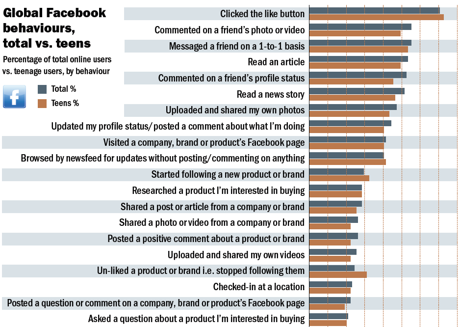Comme nous l’avons déjà relevé, Facebook est certes le premier réseau social, mais c’est aussi le seul qui soit confronté à une baisse du nombre d’utilisateurs actifs. La vidéo est l’activité Facebook principale. Malgré le recul, plus de 56 % des utilisateurs Facebook se rendent toujours sur le réseau plus d’une fois par jour. Les autres réseaux majeurs restent loin du compte : YouTube atteint 31 %, Twitter 29, Instagram 28 et Google 27 %.